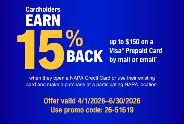 Customers must open a NAPA Credit Card or use their existing card to make a purchase at a participating NAPA location between 4/1/2026-6/30/2026.